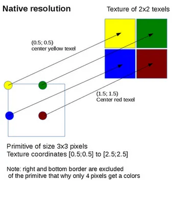 Now let's explain the other new hack. Primitives have only color information - this is enough for a small surface but not efficient to draw a big surface. In order to reduce computational load they just map a texture on to the primitive. You just need to provide the texture coordinates. Instead of a lengthy explanation, let's just use an example.