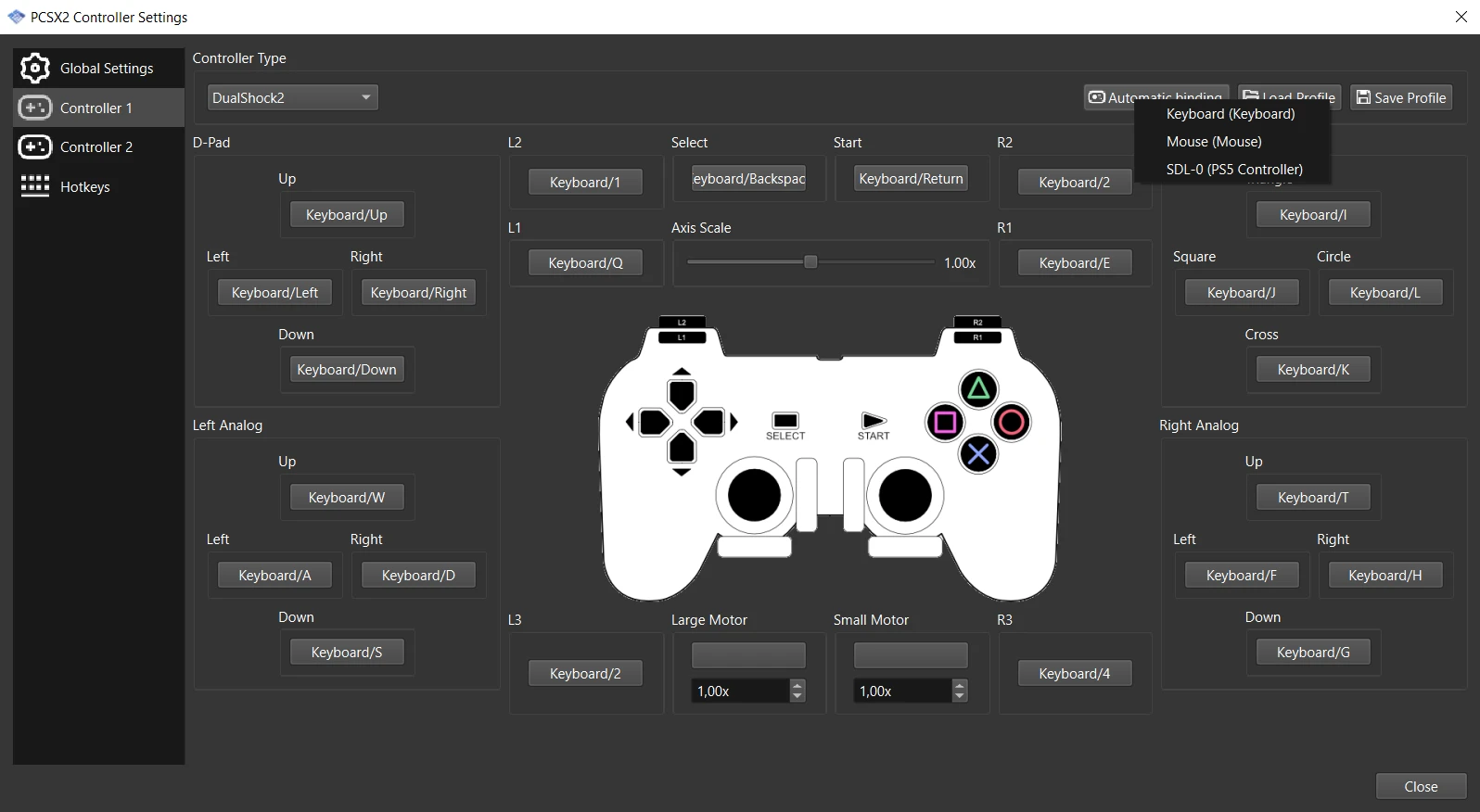 Gone are the days of fiddling with 1 or more controllers, you can finally bind (most) controller by simply going to the correct window and pressing on automatic mapping when you have your controller(s) connected. You can access this menu by either enabling Toolbar and then controllers or Settings > Controllers > Controller Port 1 > Automatic Mapping > YourControllerName. By default there is a keyboard mapping so make sure to bind it correctly, we use SDL mapping maintained by the community not only limited to PCSX2: https://github.com/gabomdq/SDL_GameControllerDB if you ever wondered seeing latest controller database builds. Are your controllers not working then it's best to contact us in the Discord or if needed contact upstream if the config doesn't have a mapping yet. You can check yourself on Windows or Linux here: https://gitlab.com/ryochan7/sdl2-gamepad-mapper/-/releases or use other methods states on the first URL.