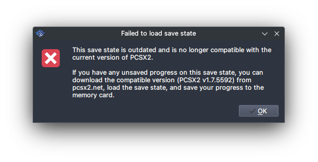 1. Download the exact PCSX2 version that are mentioned on the error dialog.