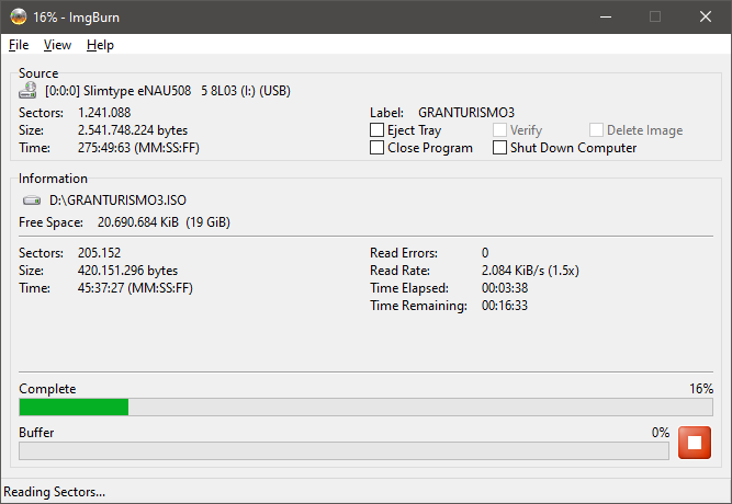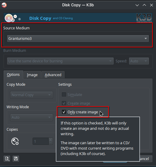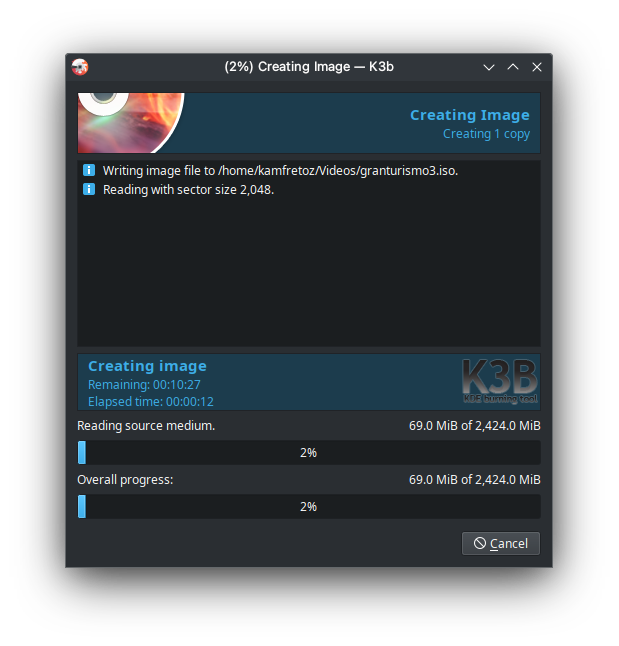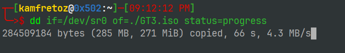 dd if=/dev/sr0 of=./GT3.iso status=progress
